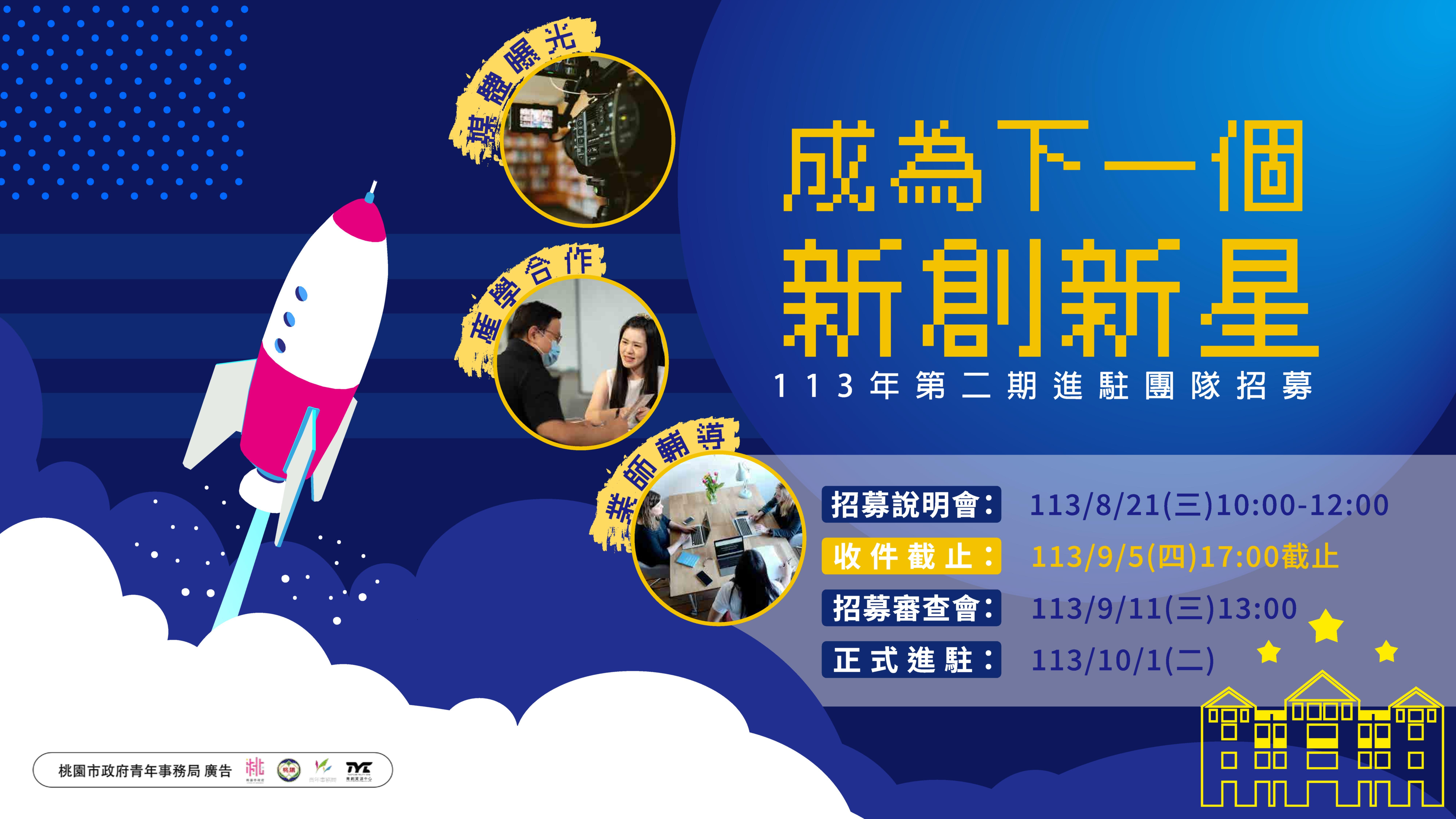 【團隊招募】桃園市政府青年事務局「桃園青創基地113年第2期進駐團隊招募」