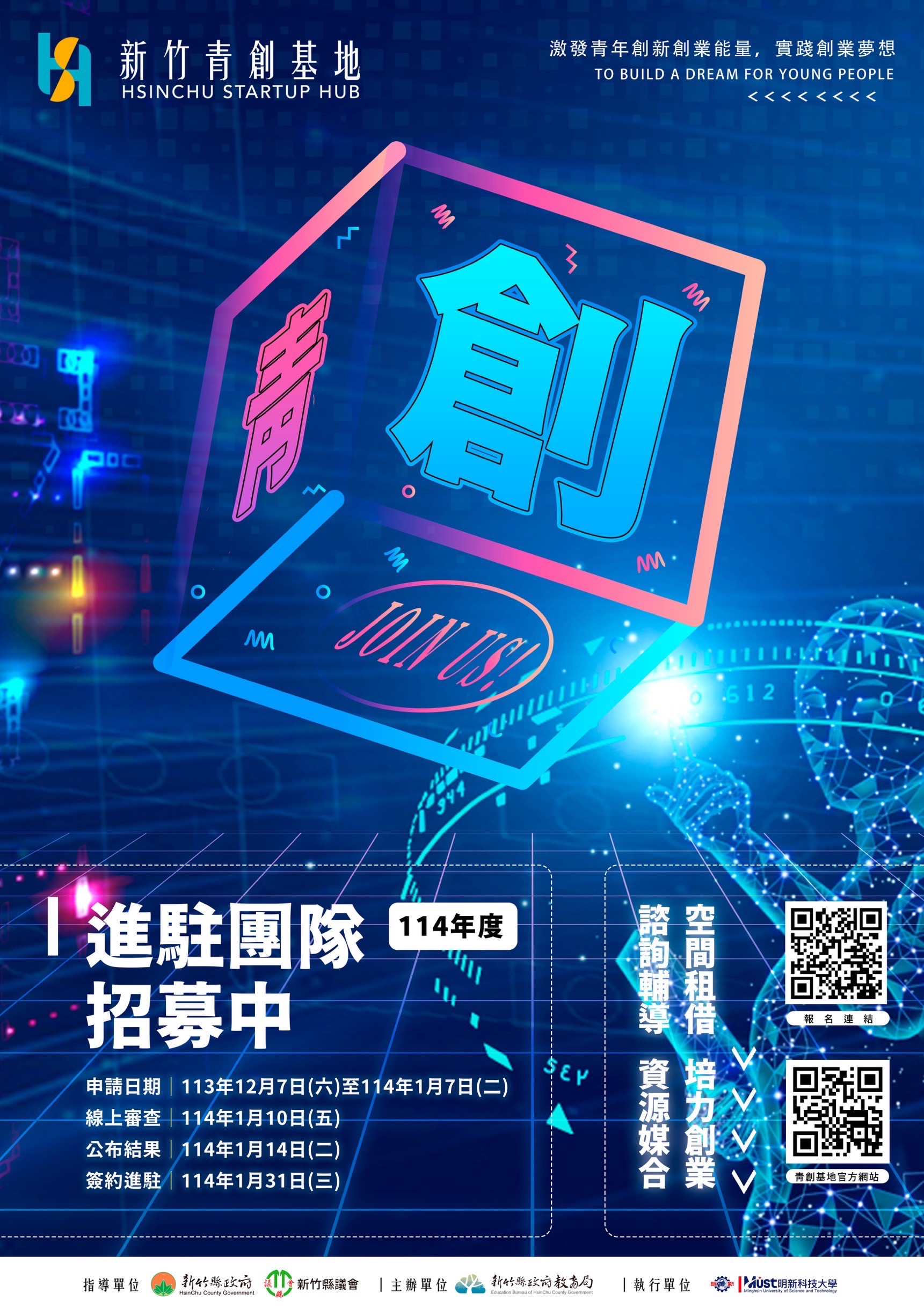 【競賽】新竹縣政府教育局辦理「新竹青創基地Hsinchu Startup Hub」114年度進駐團隊招募案